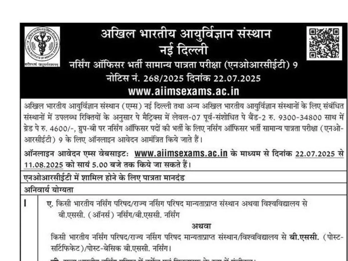 AIIMS Nursing Officer NORCET 9th Stage 2 Result 2025 All India Institute of Medical Science Exam Results 2025 AIIMS Nursing Officer NORCET 9th Written Exam Admit Card 2025 for Recruitment Common Eligibility Test Check AIIMS Nursing Officer Exam Date AIIMS Exam Date NORCET.