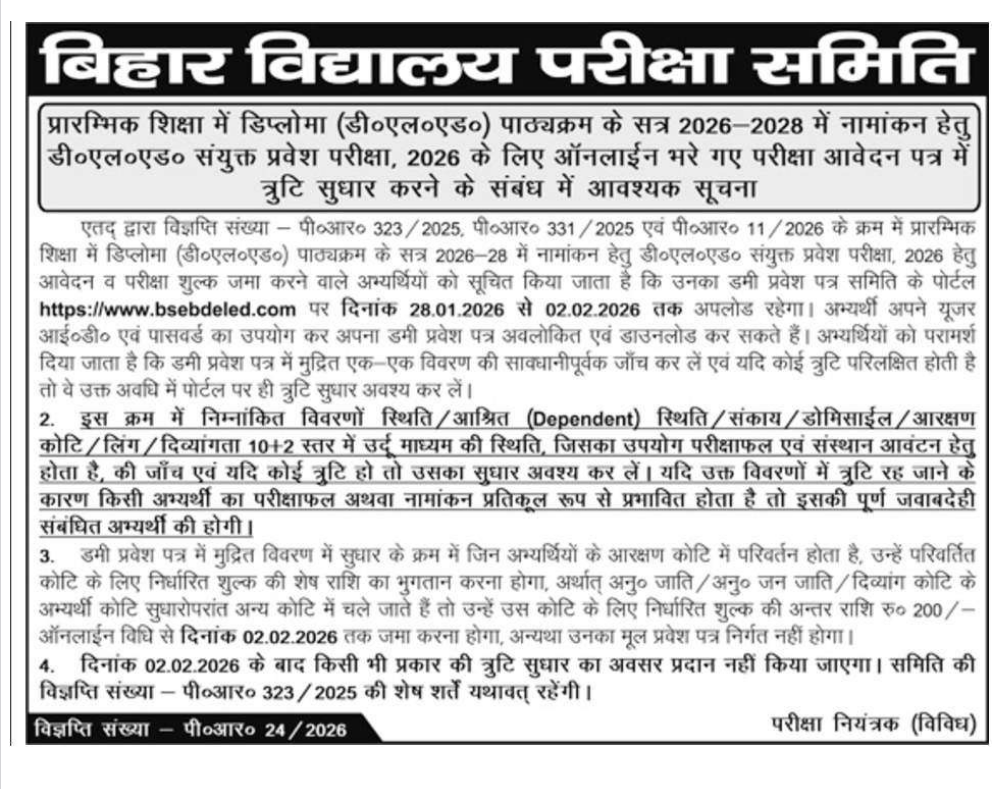 | Bihar DELED Dummy Admit Card Available | 28/01/2026 |