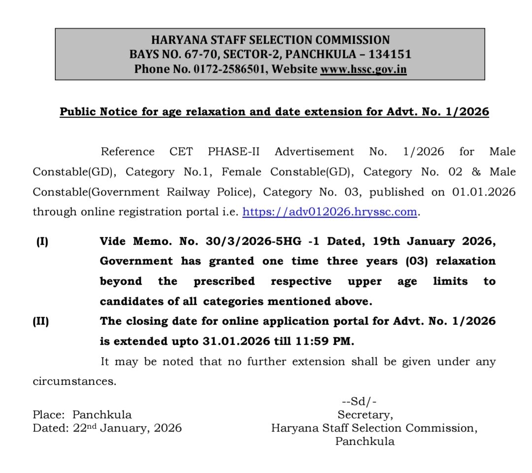| 22/01/2026 | Download Last Date Extended & Age Relaxation Noitce | Click Here |