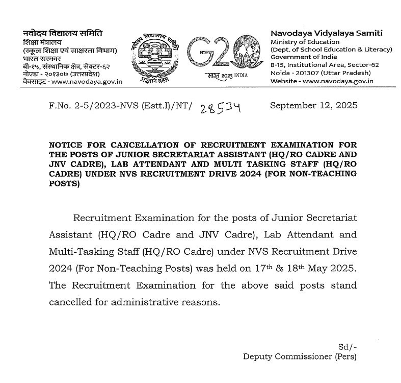- Find the Admit Card Link: Look for the link related to “NVS Non Teaching Various Post Exam Date 2025” under the latest notifications or announcements section.