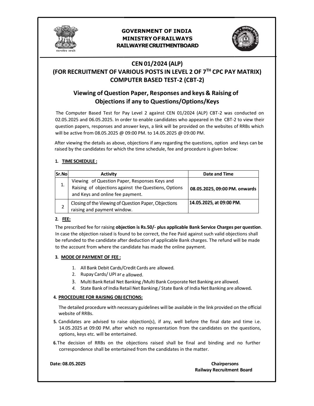 RRB Alp Stage 2 CBT Result Available 01 July 2025