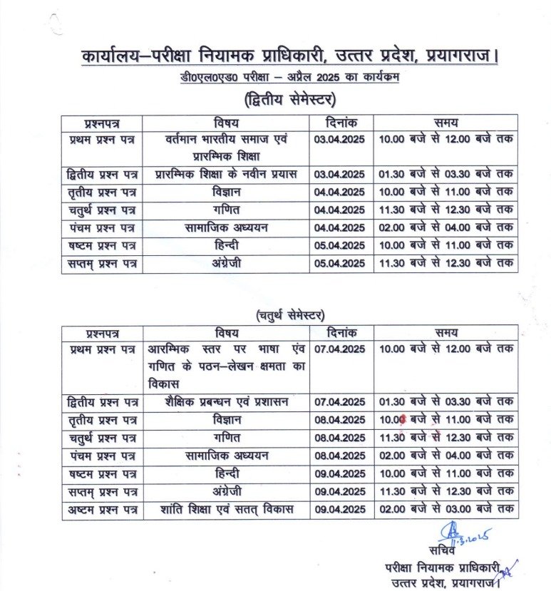 • UP D.EL.ED 2nd Semester Exam Date: 03 to 05 April 2025