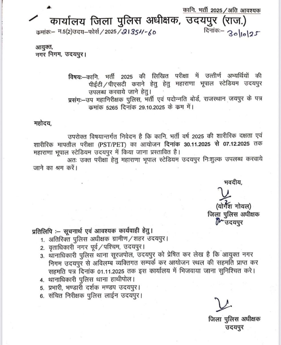 Rajasthan Police Constable PET/PST Exam Date 30 November 2025 to 07 December 2025