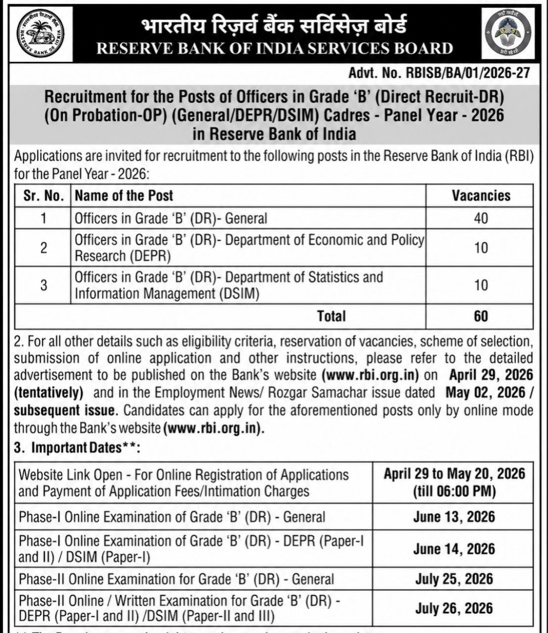 For more details and updates, visit the official website of the Reserve Bank of India. Best of luck with your application and preparation for the RBI Officer Grade B Recruitment 2026!