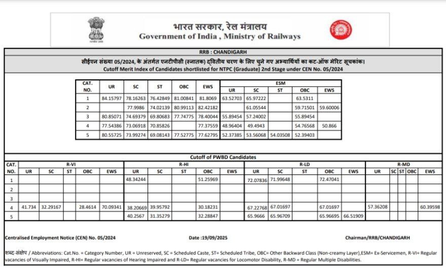 - Download RRB NTPC Graduate Level Result: 19 September 2025